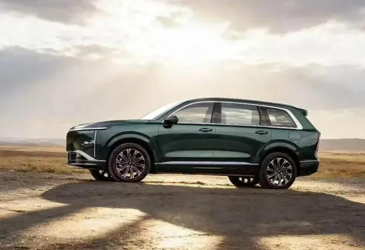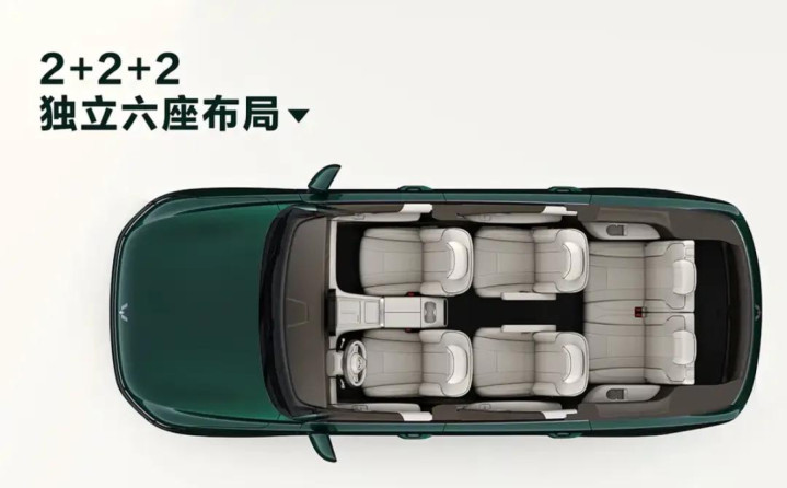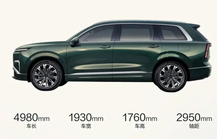 车身侧面造型酷似问界M7,配备传统机械式门把手和20英寸多辐式轮毂,搭配米其林轮胎。车身尺寸方面,新车长宽高分别为4980/1930/1760mm,轴距为2950mm,采用“2+2+2”六座布局。尾部方面,新车采用简约化设计风格,并搭载了与前脸相呼应的贯穿尾灯组。